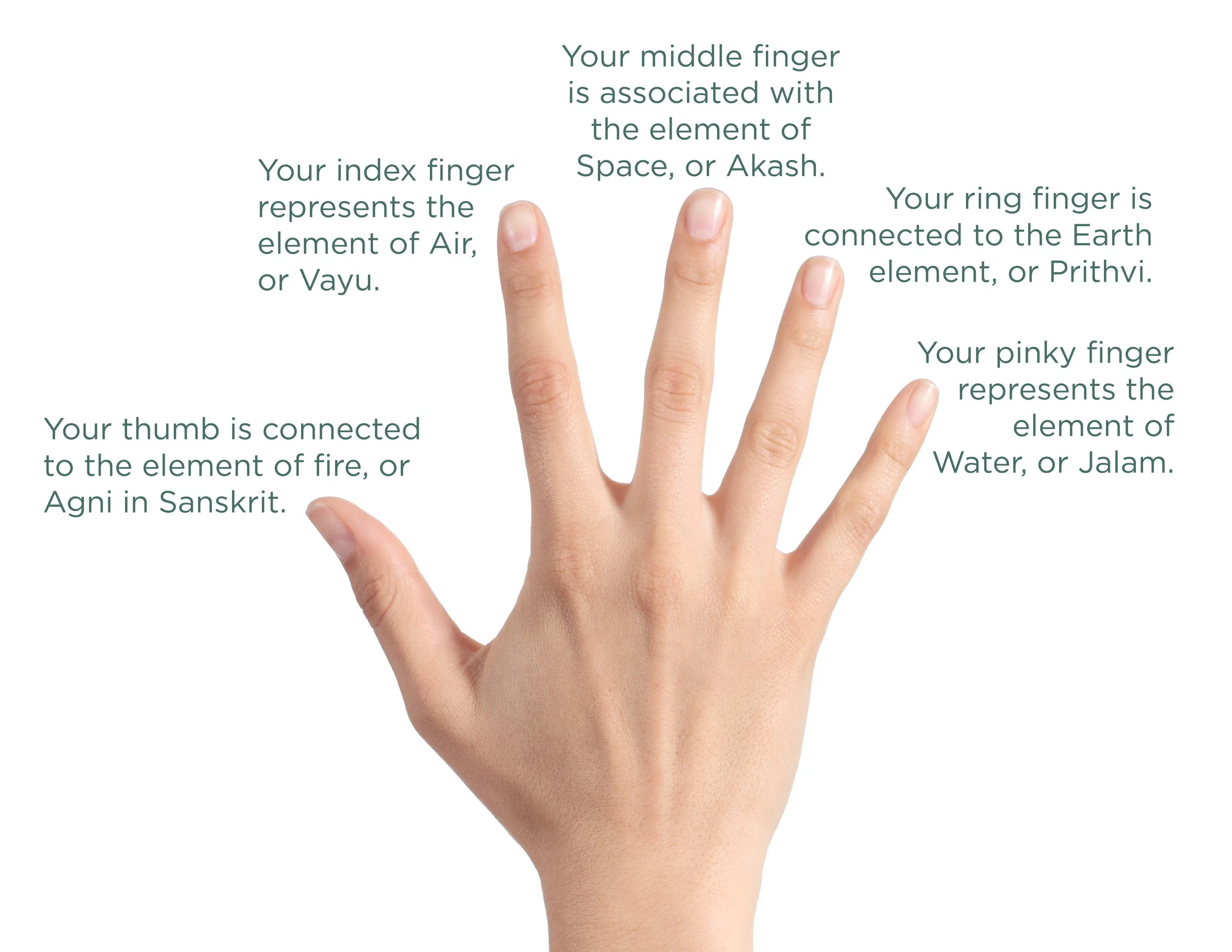 Each finger and the thumb are said to represent the elements of the Universe, so when we connect them in different configurations, we are said to be balancing the different elements that are within and all around.